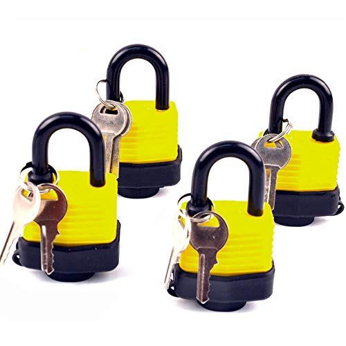 4 pack of 40mm keyed alike padlocks with 8 excessive safety keys.