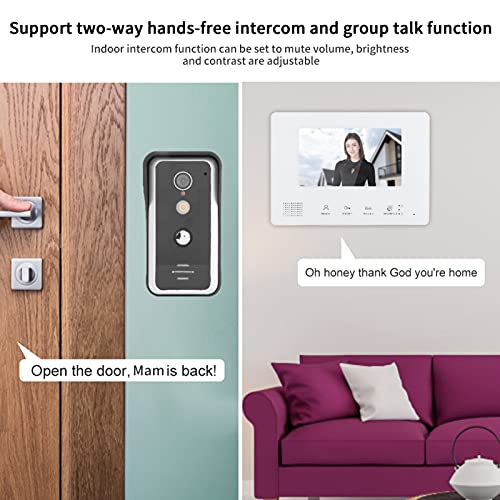 【Support Indoor Unit Dual Intercom Communication】: WiFi Video Doorbell Camera has a 7-inch shade TFT LCD show, no radiation, low energy consumption, and excessive definition. The quantity, brightness and distinction will be adjusted.